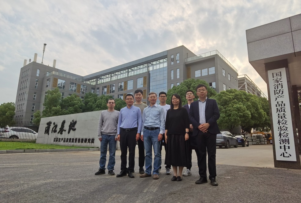 5月10日,必赢国际bwin副院长姚红兵、激光与光谱应用研究所所长岳江、物理实验中心主任向圆圆、应用物理学系主任何湘、副系主任张林一行五人前往江苏省产品质量监督检验研究院滨江基地,暨国家消防产品质量检验检测中心开展产学研合作交流。省质监院副院长陈玉明、国家消防产品质量检验检测中心徐晶晶主任等人参加了交流活动。